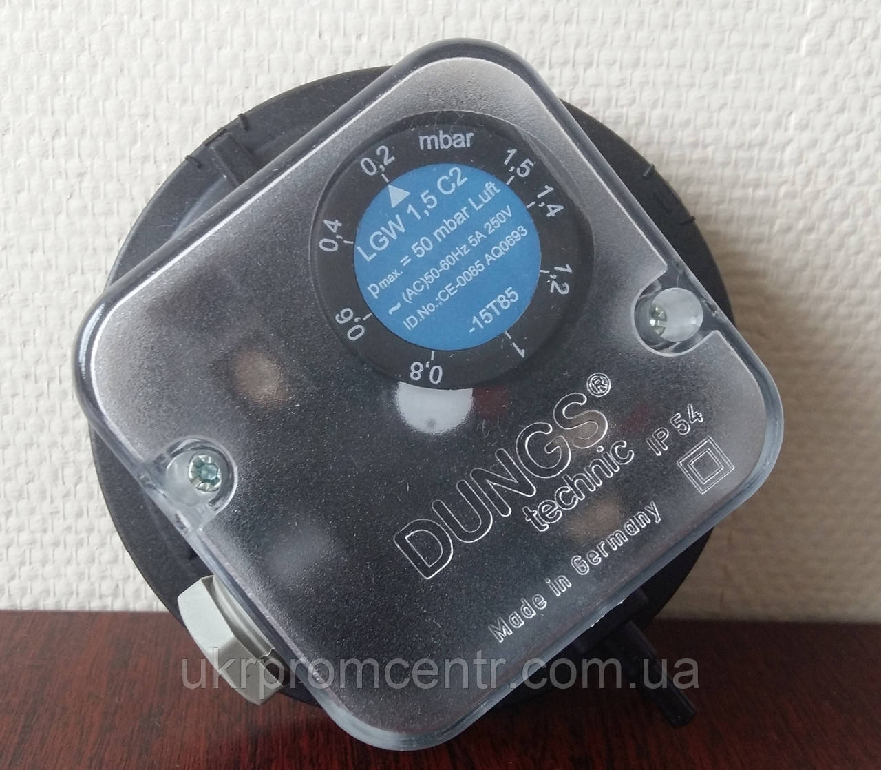 Диференціальний датчик-реле DUNGS LGW С2 предназначен для контролю тиску розрядження, різниці тисків і надлишкового тиску газу та повітря. У разі збільшення або зменшення величини різниці тиску за межу допустимого значення, контакт замикається і подається сигнал на пристрій керування. Регулювальна шкала з цифровими позначеннями втома дає змогу легко налаштувати датчик.